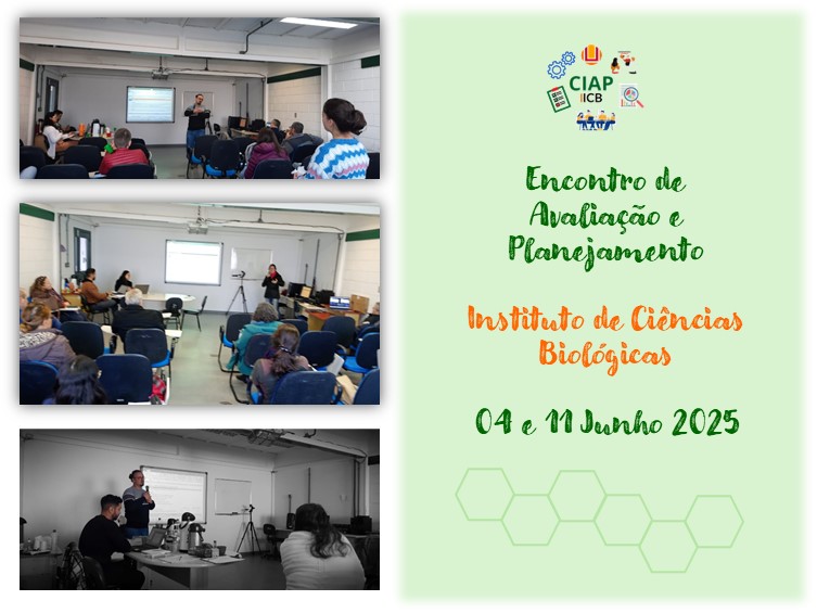 A Comissão de Avaliação e Planejamento do Instituto de Ciências Biológicas - CIAP ICB, realizou encontro de avaliação e planejamento nos dias 4 e 11 de junho de 2025.O evento propiciou a integração entre as pessoas que trabalham ou estudam no ICB, e reuniu os Grupos de Trabalho de acordo com os eixos previstos no Plano de Desenvolvimento Institucional - PDI 2024-2028. Na ocasião, foi discutido o andamento das ações para o alcance das metas pactuadas no Plano de Ação do ICB 2025, construído coletivamente pela Comunidade ICB.