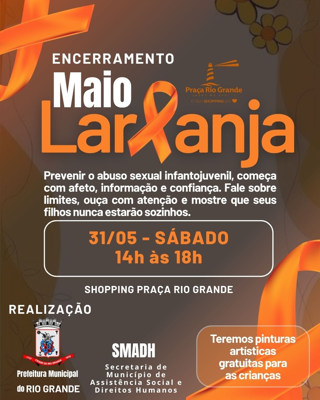 Os próximos eventos do Mês da Proteção / Maio Laranja incluem: